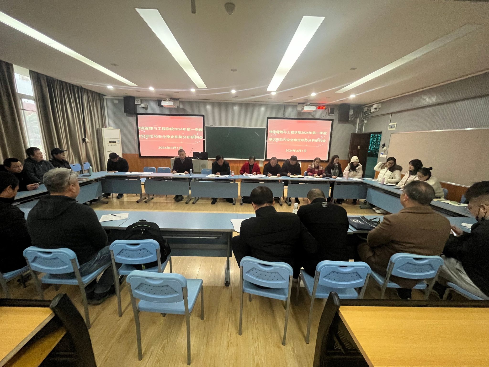 3月1日下午,太阳成集团tyc7111cc在明秀校区文星楼401召开了2024年第一季度意识形态和安全稳定形势分析研判会,学院全体教职工参加了会议,会议由学院汪德荣经理主持。